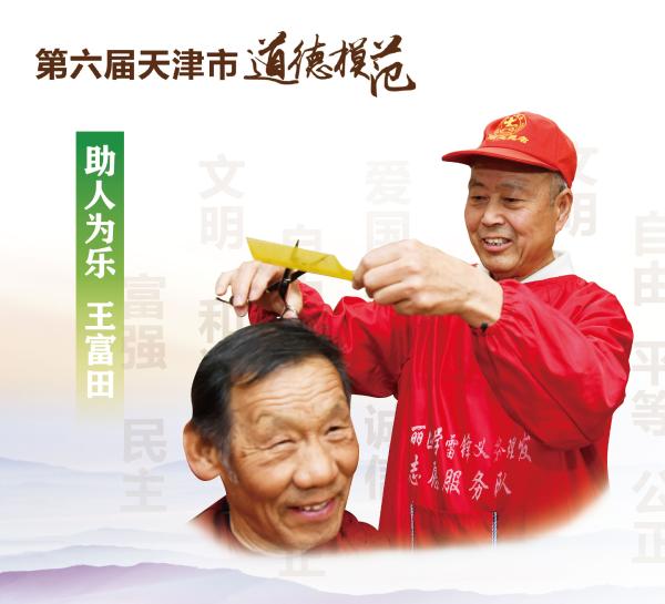 王富田,男,1945年6月生,群众,天津市东丽区学雷锋志愿服务总队义务理发队队长,东丽区福山北里社区义务巡逻队队长。