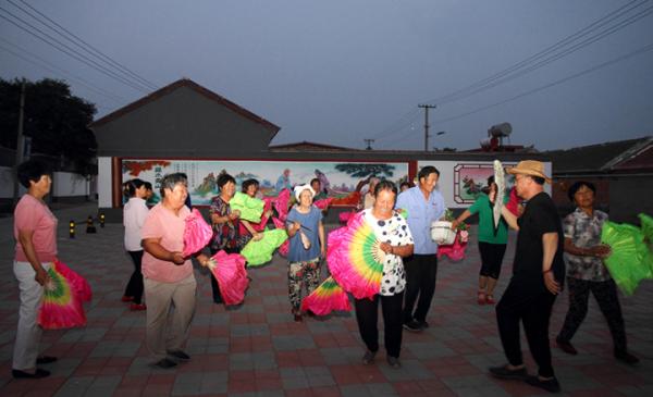 这边孩子们在安静地读书,大队部篮球场上却是一片喧闹。穿着校服的学生们,在球场上厮杀,强身健体的同时,释放学业上的压力。听,湿地公园那边优美的音乐响起来了,满脸喜悦的村民们欢快的舞步跳起来了。《站在草原望北京》等11首红歌,首首都代表了舞蹈者的心声,过上幸福的日子要感谢党,感谢日新月异的家乡宝坻。广场舞的领头人是“90后”许佳,这些红歌都是她围绕着庆祝新中国成立70周年这一主题选编而成的。除了负责村里广场舞队伍选曲和教授,心灵手巧的许佳还担任着村里幼儿园的编舞工作。前不久村里举办的端午节演出,幼儿园小朋友表演的《说唱中国红》,就是由许佳编曲,赢得了一致好评。夕阳的最后一抹余辉洒向湿地公园,将一池碧水映照得如梦如幻。越来越多的村民向这里聚拢,有的看广场舞,有的赏夕阳美景。小孩子们互相追逐着,尽情地享受欢乐美好的童年时光。