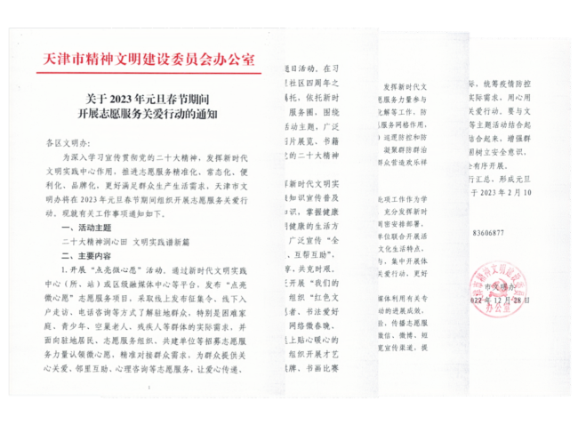 昨日,市文明办下发《关于2023年元旦春节期间开展志愿服务关爱行动的通知》,号召全市开展以“二十大精神润心田 文明实践谱新篇”为主题的志愿服务关爱行动。