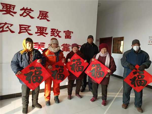 活动前,村委会特邀请泗村店镇书法爱好者、天津好人杨增陆为居民撰写了多幅“福”字,借“福”字表达对村民的满满祝福。