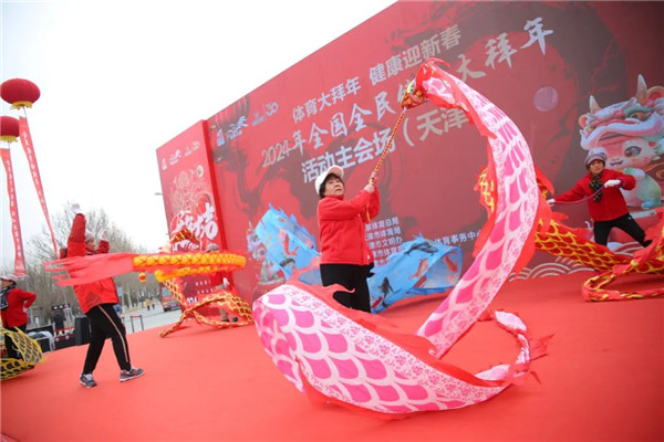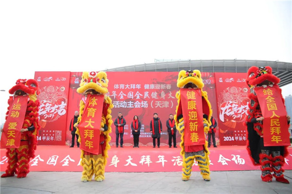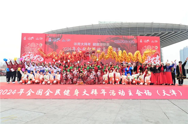 2月4日,正值“立春”节气,2024年全国全民健身大拜年活动主会场(天津)活动在天津文化中心隆重举行。国家体育总局群体司、市体育局、市文明办、河西区等有关领导出席活动并共同为瑞狮点睛启动活动。全市优秀健身队伍代表、健身爱好者以及大批现场观光游玩群众共同参加了活动。