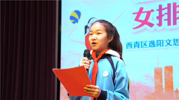 在随后开展的“铿锵昂扬展新篇 女排之韧启学程”开学典礼上,天津女排队员刘立雯结合自己学习排球的经历,深刻阐述了“锐意进取、迎难而上、顽强拼搏、争创第一”的天津女排精神,收获了在场学生的阵阵掌声。逸阳文思学校总校长和学生代表在发言中,向天津女排队员和教练员的到来表示感谢,并表示,天津女排奋发向上的力量和百折不挠的勇气,将激励着逸阳文思学校每一个学子努力学习,不断地勇攀高峰,战胜困难。
