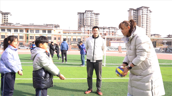 典礼结束后,天津女排队员们为学生们进行分组排球教学,现场为大家讲解了排球知识以及相关基础动作,并组织大家进行分组练习。学生们展现了极高的参与热情,教学活动进行得热火朝天。