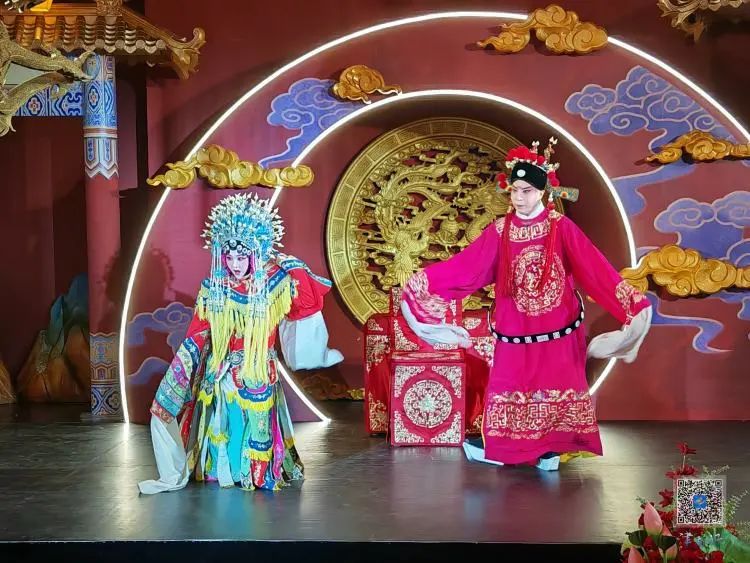 活动当天,来自天津河北梆子剧院的演员们身着华丽戏服粉墨登场,为观众们献上了河北梆子经典剧目《打金枝》。该剧讲的是唐代宗将爱女升平公主许配给汾阳王郭子仪六子郭暧为妻。汾阳王寿辰,众子女成双配对前往拜寿,惟独升平公主恃贵不往,郭暧羞耻汗颜,回宫怒打公主。公主向父母哭诉委屈,逼求父王治罪郭暧。郭子仪绑子上殿请罪,唐王明事理,顾大局,非但不怨反而加封郭暧。皇后劝婿责女,最终使小夫妻和好如初。演出过程中,青年演员司卫涛发声吐字喷扬有力、真假声并用,使得声调具有婉转、纤巧的阴柔之美,不仅达到了“近听不噪不吵,远听字字入耳”的艺术效果,更成功塑造了一位温和质朴、沉着风趣、富有人情味的唐王形象。演员们精彩的表演赢得了观众们的掌声和喝彩。
