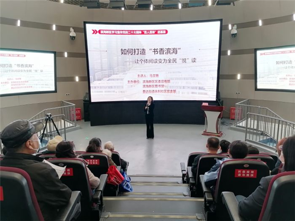 “在今天的宣讲中,我们把社区居民请到了滨海新区图书馆,我们也是希望以一种非常丰富的形式,比如说我给大家做宣讲。我们还邀请社区这些读者朋友们,让他们能够亲自参与到我们新时代文明实践活动中来,让大家来到知识的殿堂,让大家参与读书分享,从而真正地体会全民阅读工作给大家带来的幸福感、获得感,真正体会全民阅读工作带给市民们的文化享受。”马文艳说。