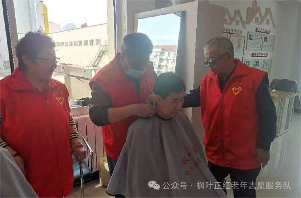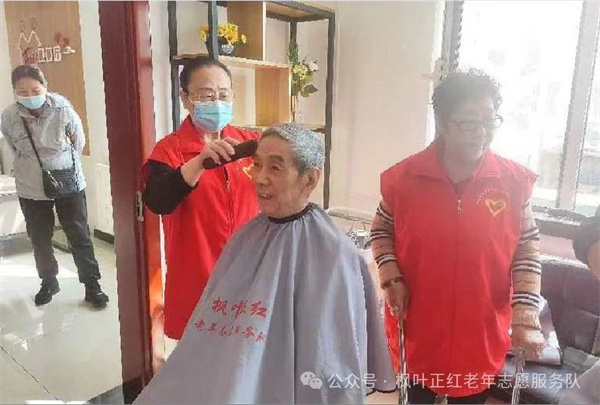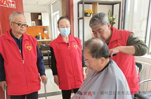 “大爷您今年多大年纪啦?”“87岁了,年轻时当过兵,具有60多年的党龄了。”“您是老党员了,这么大的年纪如今后不方便,留下居住地点我们入户为您理发。”“谢谢,太谢谢啦!现在身体还行,为了路上安全、闺女陪着我到社区来理发。”这就是志愿者给一位老人理完发后在一起交谈的内容。