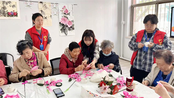 为了进一步发挥文化志愿服务在社区“为老”领域的重要作用,持续聚焦老年人的精神文化需求,在大学生志愿团队中营造“深怀敬老之心、倾注爱老之情、笃行为老之事”的浓厚氛围,日前,卫津荣耀总队所属的天津滨海职业学院现代服务管理学院逐梦星火团队深入滨海新区新村街综合养老服务中心以及新北街贻成豪庭社区,相继开展了“巧手慧心,丝网传情”丝网花制作益老志愿服务活动,辖区40余名老年人参加了此次活动。