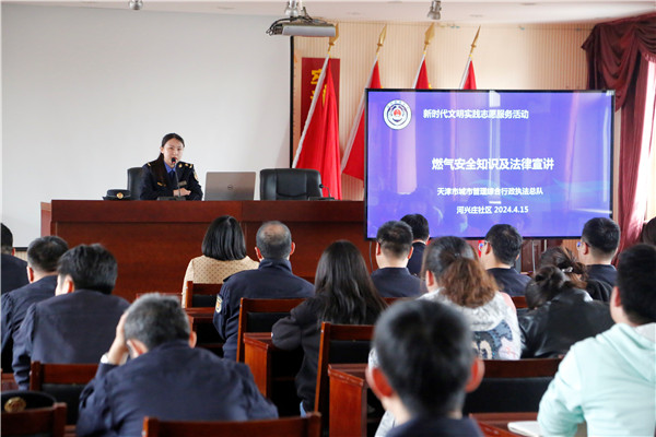 在全民国家安全教育日,市城管执法总队主动对接“城市管理服务进社区”试点社区,联合河北区城市管理委、建昌道街道办事处在河兴庄社区共同开展了“国家安全教育日 燃气安全进社区”主题宣传活动。