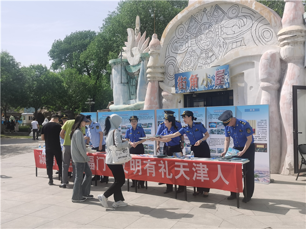 为深入宣传《天津市文明行为促进条例》《天津市促进精神文明建设条例》,进一步引导广大市民养成良好的文明习惯,5月16日上午,市城市管理综合行政执法总队、市文化市场行政执法总队在水上公园联合开展“诚信开启幸福门、文明有礼天津人”主题宣传活动。