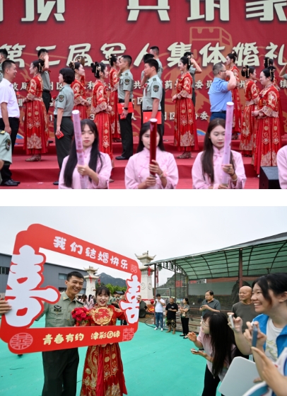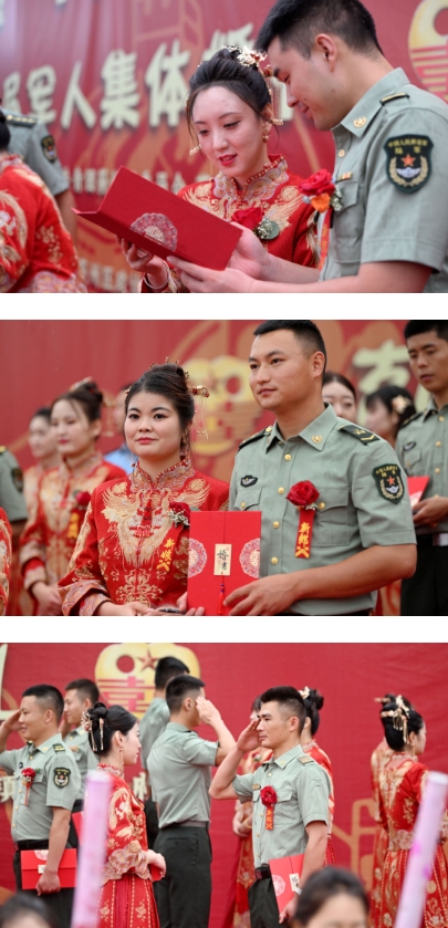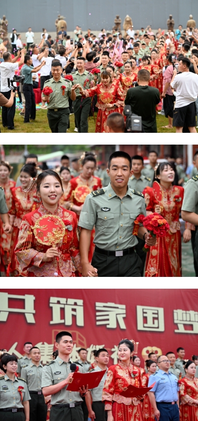 7月25日,“缘聚九山顶 共筑家国梦”——天津市蓟州区第二届军人集体婚礼在下营镇九山顶自然风景区举办。来自驻京津冀地区部队的30余对新人在众人的见证下喜结连理,以此庆祝中国人民解放军建军97周年。