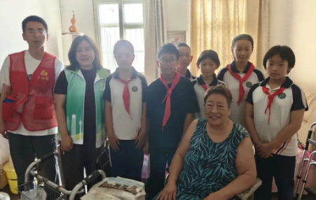 在社区工作人员的陪同下,大家来到三位老人家中。每到一户,青少年志愿者们都亲切地与老人聊天,送上新鲜的蔬菜和真挚的祝福。老人们接过蔬菜,脸上洋溢着幸福的笑容,纷纷对青少年的贴心举动表示感谢。70多岁的残疾人李奶奶感慨地说:“看到孩子们这么懂事,心里特别温暖,也特别感谢大家一直都惦记着我们这些老人。”青少年志愿者们不仅为老人送去了物质上的帮助,更用他们的实际行动传递了社会的温暖和关爱。