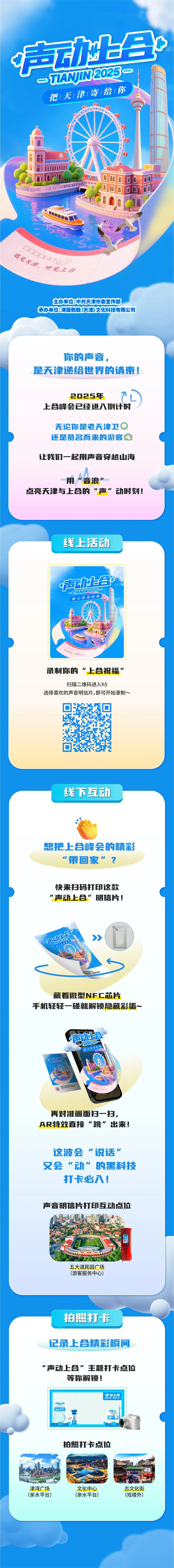 为营造喜迎上合的浓厚氛围,近日,由中共天津市委宣传部主办的“声动上合·把天津寄给你”声音明信片活动现已开启。从即日起,期待市民游客朋友们来到和平区津湾广场、五大道文化旅游区,用镜头、明信片记录下属于你的“上合”记忆,为上合添“津”彩。快来分享你的作品,定格上合高光时刻吧!