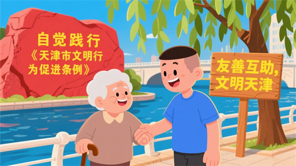 自觉践行《天津市文明行为促进条例》,日常言行守礼有度。公共场合不乱扔垃圾、不喧哗打闹,多讲文明礼貌用语,摒弃不文明语言。遇各国来宾时,尊重外交礼仪,保持礼貌距离,不围观尾随、不摄录拍照,以从容大方的姿态展现天津市民的包容与友善。