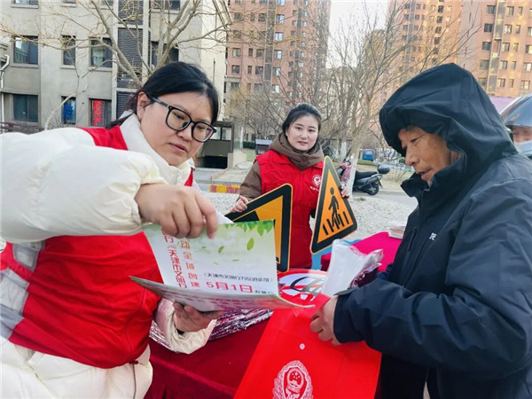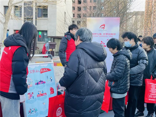 互动宣传区里,志愿者们围绕文明礼仪、环保节约、文明交通三大主题展开细致讲解。不仅向居民普及《天津市文明行为促进条例》和“争做文明有礼天津人”8项行动,引导大家养成文明习惯,还通过垃圾分类小游戏、环保知识问答等趣味形式,让绿色生活理念深入人心。文明交通宣传环节中,交通规则、安全知识与交通标志牌含义的科普,有效提升了居民的交通安全意识,为出行安全保驾护航。