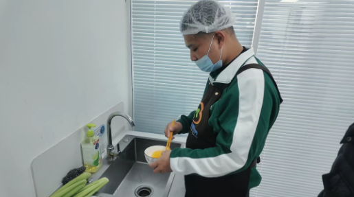 哥哥的名字叫博浩,如今的他,通过在大龄托养机构里训练,不断突破自己,已经学会了主动打招呼、整理货物,甚至开始在厨房帮厨——洗菜、切菜、备料这些“墩儿上活儿”以及简单的烹饪,博浩都能干。机构每天中午的饭菜都有他的参与,在劳动中慢慢找到了自己的价值。