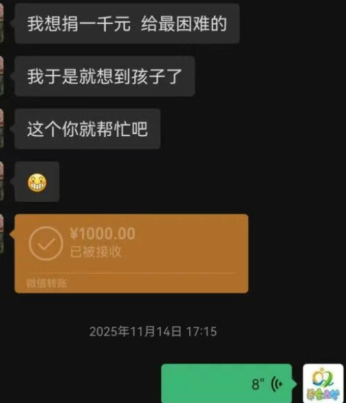 然而,和这些荣誉相比,更让李洁看重的是,这份爱似乎正在悄悄地开枝散叶——不久前的某一天,一位曾受过她帮助的家长,突然给她转来1000元钱,让李洁代她捐给更困难更有需要的家庭。“以前她是受助者,现在变成了助人者,这是我最想看到的。”