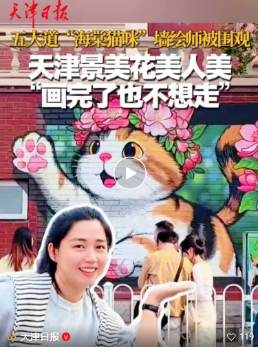 思睿的墙绘不仅“火”在了大街上,更“火”到了短视频平台。她将创作过程和游客的反响发到网上,收获了近万点赞。评论区里,天津市民纷纷留言,不仅夸赞她画得好,更送上了满满的“天津式热情”:有人邀请她吃煎饼果子,有人期待她再次来津创作。