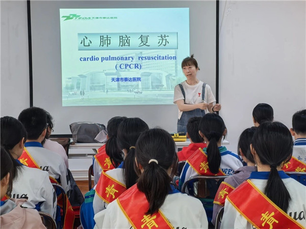 活动开始前,青年梦想家志愿服务中心理事长韩老师先为我们介绍了本次活动的内容与意义,强调了急救技能在日常生活中的重要性。紧接着,泰达医院的护士长就正式开讲啦。她先给我们科普了心肺复苏的核心原理:当人发生心搏骤停时,黄金抢救时间只有短短4分钟,及时、正确的心肺复苏,能为患者争取到宝贵的生机,这也是我们每一个人都应该掌握这项技能的原因。