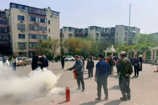讲座后,大家移步社区广场,社区居民与专家一同在组织灭火演练,物业现场模拟火情,手把手指导居民操作灭火器。大家踊跃参与,按照“一提二拔三握四压”的步骤亲身体验扑灭初起火灾,气氛热烈而有序。